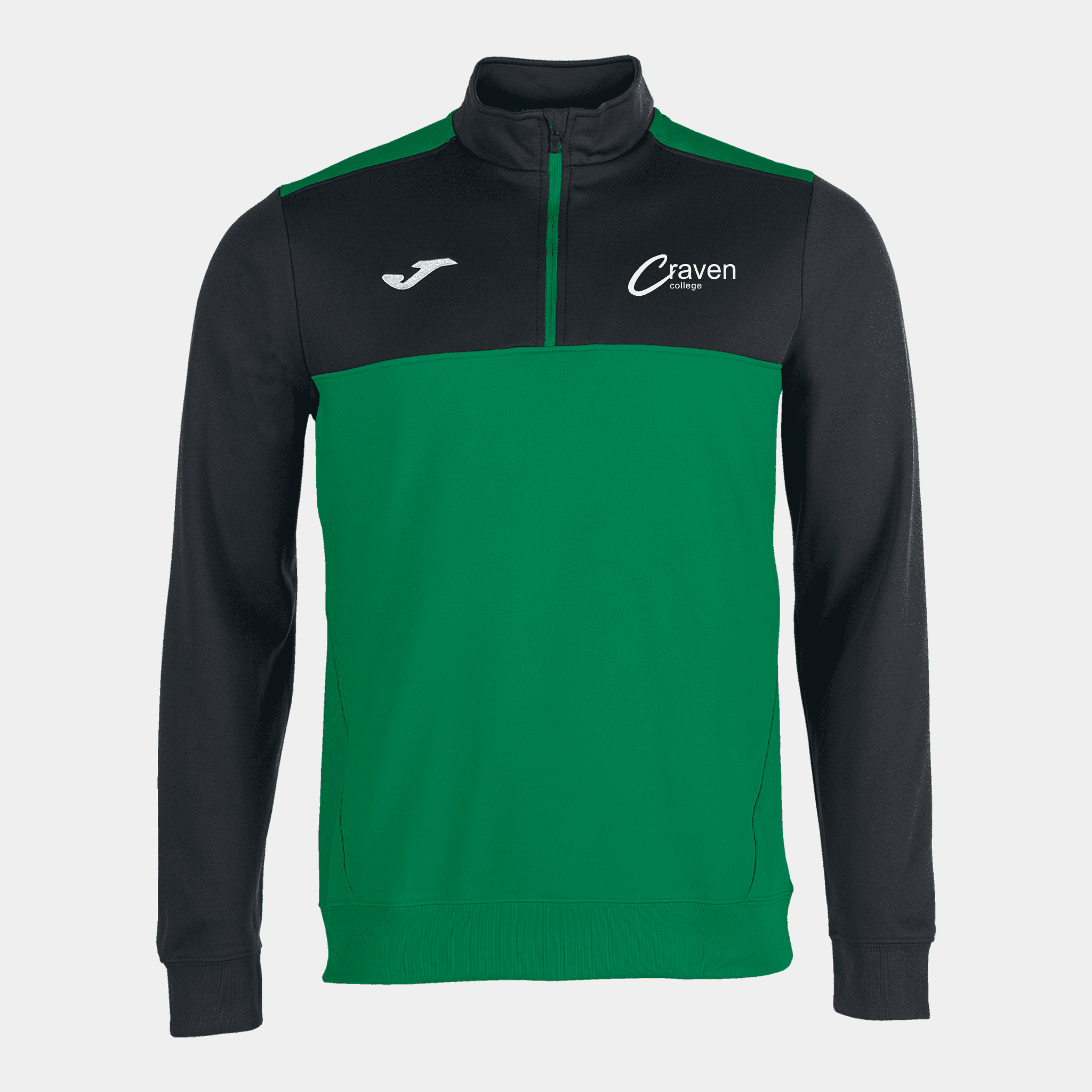 Half-zip sweatshirt stands out due to its contrasting yoke, forward shoulder seam, ribbing on cuffs and embroidered logo. Comes with Craven College badge and student's initials.